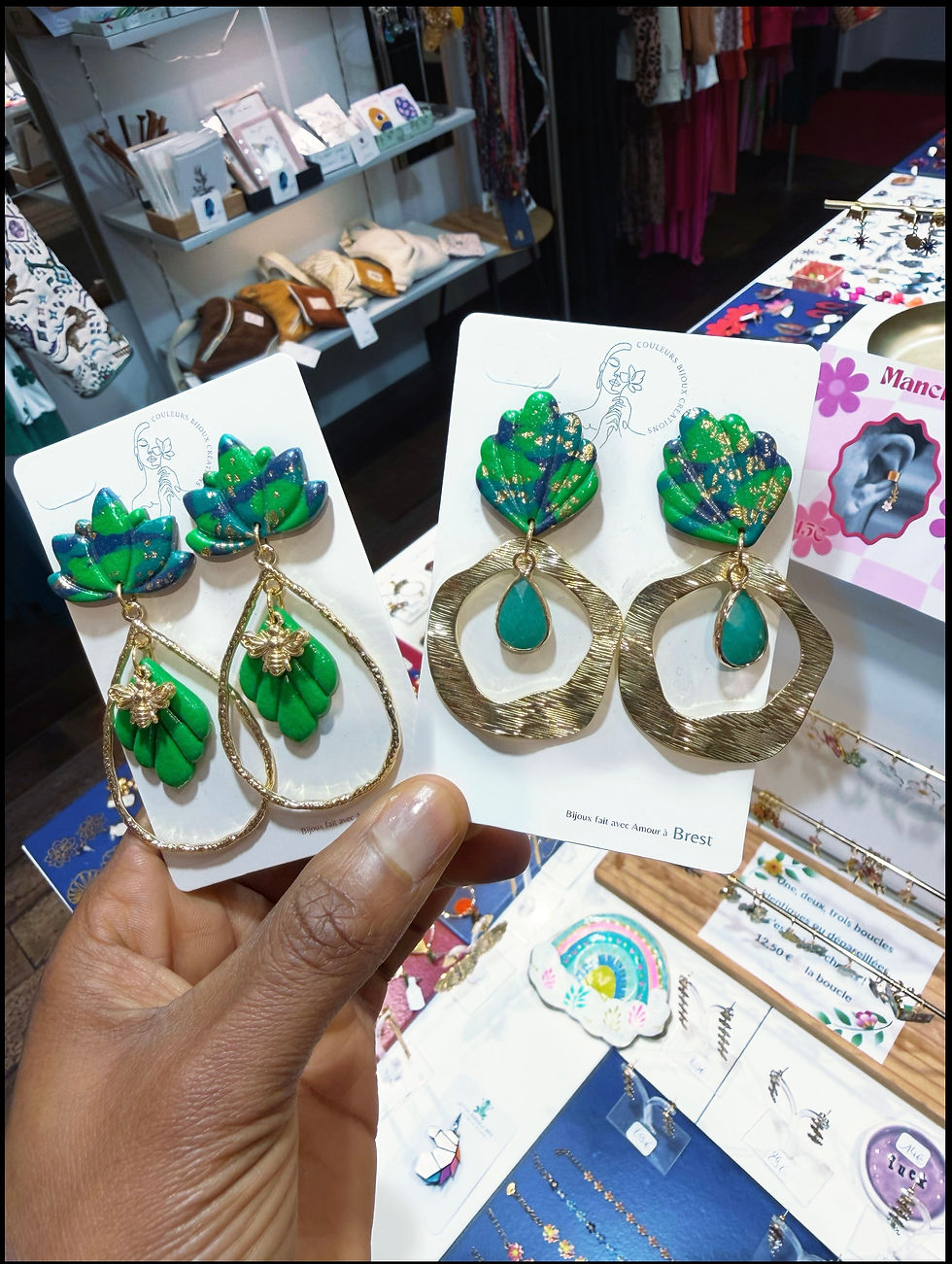 Les boucles d'oreilles "Goutte d'eau" réversibles (un côté coloré, l'autre noir) en pièces uniques sauront illuminer votre visage et colorer vos tenues !
